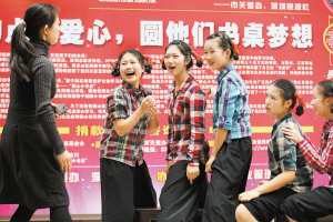 “愛心小書桌”活動(dòng)啟動(dòng)儀式上,孩子們?cè)诒硌菸璧浮稅坌男馈贰?/strong>