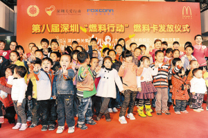 ????昨天晚上在中心城中庭廣場,“燃料行動”第八次將一張張延續(xù)生命的“燃料卡”發(fā)到了深圳貧困地貧兒手中。據(jù)悉,第八屆燃料行動由深圳晚報和市關(guān)愛辦、市紅十字會、富士康科技集團(tuán)聯(lián)合主辦,麥當(dāng)勞餐廳(深圳)有限公司、市香蜜湖獅子會、市血液中心、市第二人民醫(yī)院協(xié)辦,8年來,已有超過200萬毫升的免費血液因為上萬愛心市民和企業(yè)的捐助被輸入孩子們的身體,讓他們成功長大了8歲。
