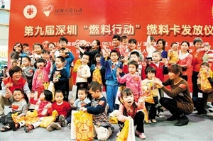 ????連續舉辦9屆的燃料行動正在吸引越來越多的愛心企業和市民的關注。據了解,“燃料行動”自開展以來,富士康科技集團長期持續關注地貧患兒的健康成長,累計向“燃料行動”捐贈善款480萬元,用于“燃料卡”救助工作的持續開展。2010和2011年,深圳長城開發科技股份有限公司共捐贈40萬元,資助20名地貧患兒。麥當勞連續四年承辦“燃料卡”發放儀式,為地貧兒舉辦生日會,讓孩子們樂享麥當勞“大餐”。廣東省公安邊防總隊第七支隊今年也加入到愛心行列,他們成立“燃料行動愛心血庫”,計劃長期為地貧兒定向捐血。此外,益田假日廣場還免費為本次活動免費提供了場地。