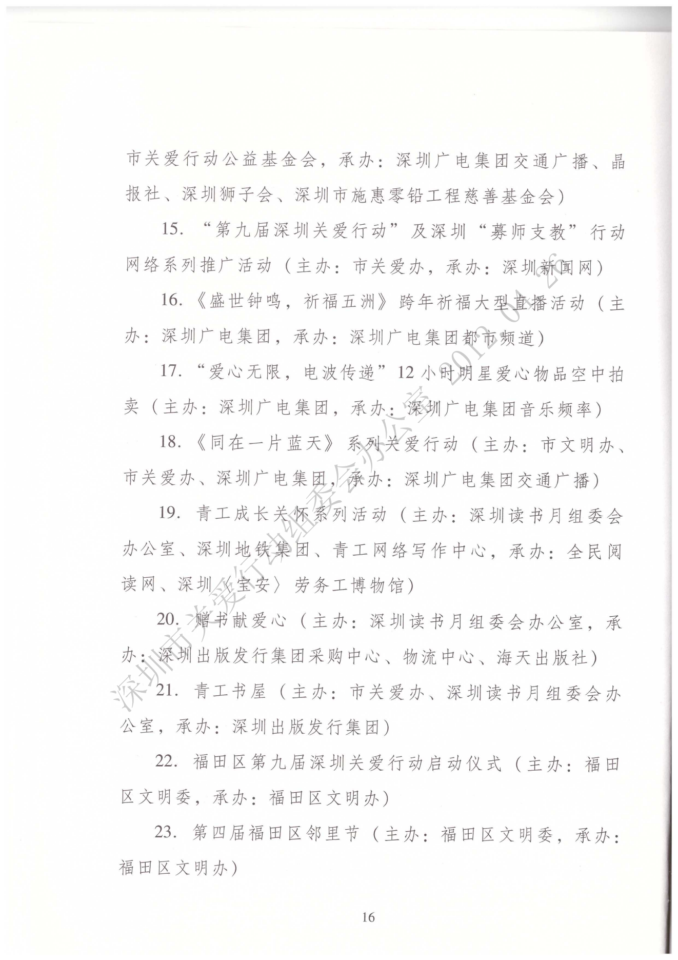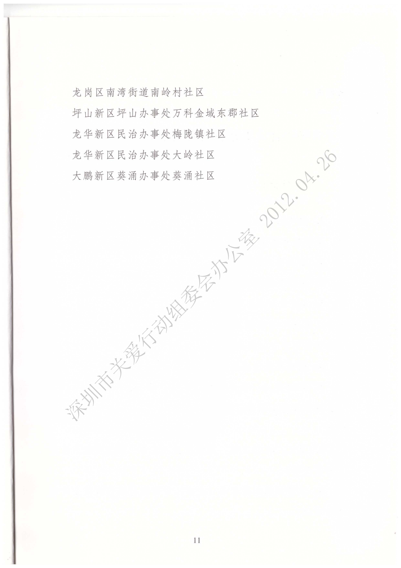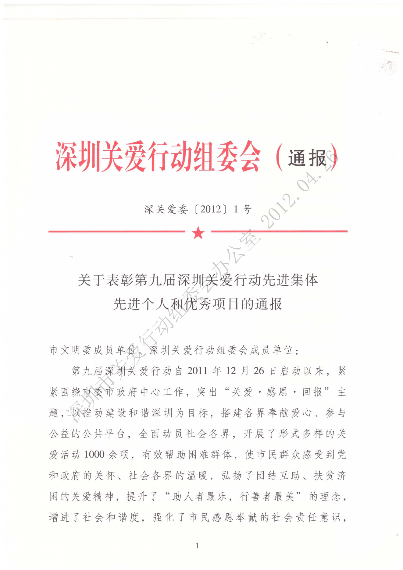 關于表彰第九屆深圳關愛行動先進集體、先進個人和優秀項目的通報