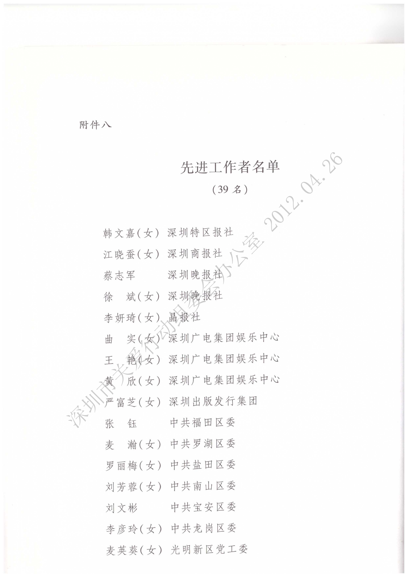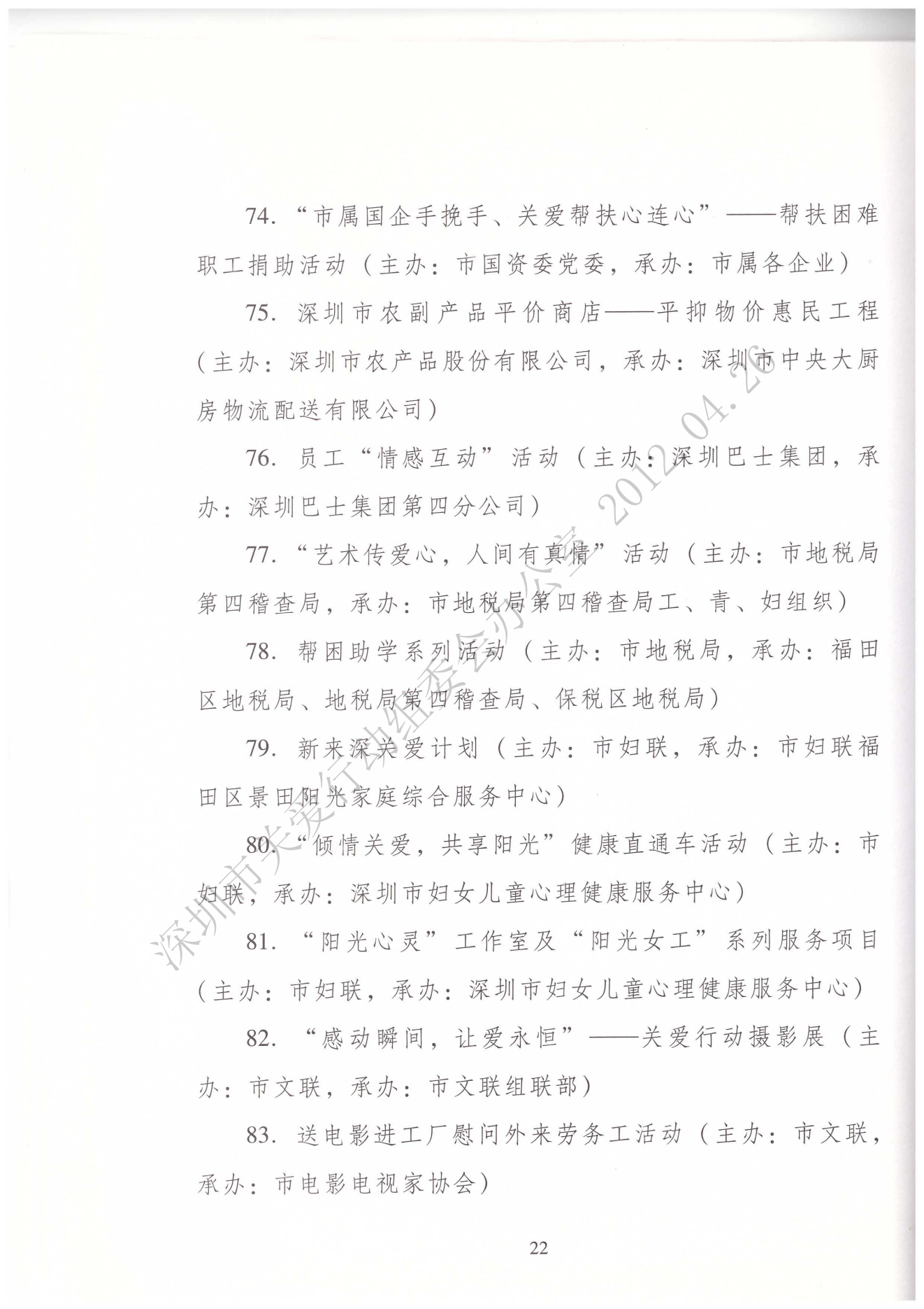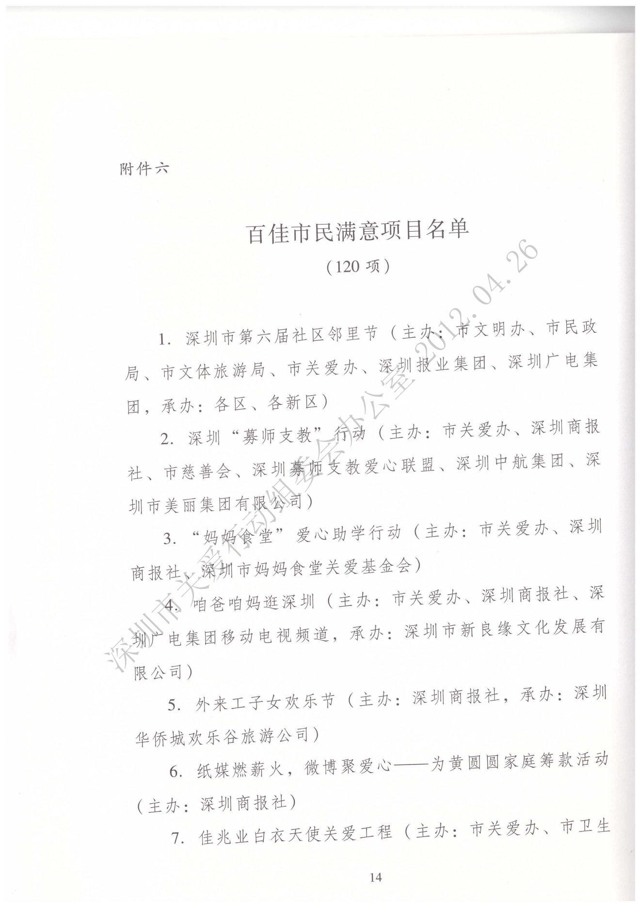 關于表彰第九屆深圳關愛行動先進集體、先進個人和優秀項目的通報