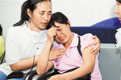 昨天,市民袁女士決定捐獻(xiàn)出兒子所有能用的器官。圖為志愿者正在安慰痛苦的袁女士(右)。深圳商報(bào)記者 李 博 攝