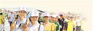 現場參與活動的企業、團體很多打著獨具特色的旗幟,彩旗飄飄讓現場充滿了生氣和活力。上午快9點時,記者在日出露天劇場看到兩塊牌子特別醒目,分別寫著“支持百萬行”、“支持特區報”,這是由深圳鑫鑫有義工服務隊特別“打造”的,服務隊的義工們紛紛在綠草地上與自家牌子合影留念。深圳鑫鑫有義工服務隊由鑫鑫有投資發展有限公司組建,在總經理易先生的帶領下,20名服務隊的義工今早6點就到公司集合前往百萬行活動現場?!拔覀兊膯T工熱愛公益,覺得參加‘公益金百萬行’很有意義?!币紫壬鸁崆榈卣f,兩塊牌子說出了他們的心聲。