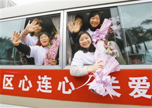 志愿者之城——深圳,愛心向貧困山區延伸。深圳第十二支募師支教隊志愿者赴湖南支教,整裝出發。 (本報資料圖片)