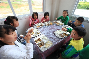 “媽媽食堂”開(kāi)伙了,與此同時(shí),國(guó)家財(cái)政撥款每生每天3元的營(yíng)養(yǎng)午餐費(fèi),讓兩所學(xué)校的1200余名小學(xué)生每天在學(xué)校都能吃上熱騰騰的飯菜,徹底告別了中午挨餓的日子。“每頓飯都有兩菜一湯,有時(shí)候吃米飯,有時(shí)候吃米粉,有時(shí)候吃饅頭,很好吃。”一年級(jí)的小朋友大口地吃著飯,咧著嘴笑,連臉上粘著一顆小米粒也毫不察覺(jué)。