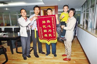 昨日下午,爸爸簡水生帶著小威威一起來到深圳商報社,給報社和記者秦興梅送上“熱心為民、排憂解難”的錦旗以示感謝,并再三囑咐記者,一定要替他們一家向所有愛心人士轉達感激之情。