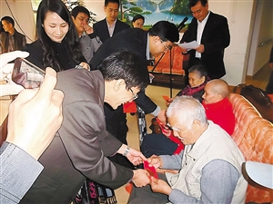 昨天上午,大鵬新區管委會副主任朱剛等到大鵬敬老院慰問孤寡老人,還給老人們圍上純羊絨織就的愛心圍巾,老人們非常開心。朱剛一行隨后還來到位于大鵬華僑中學附近的教師樓,探望因病致貧的教師家屬,并送上慰問金和愛心食用油、大米等物。