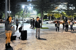 截至記者發稿,“VOL”在中心書城演唱《someone like you》的視頻網絡點擊率已超過83萬人次,網友贊聲一片。演唱這首歌的3名女生分別是來自北師大附中的張嘉慧、光明中學的董安琪和深圳藝校的周映。近日,記者來到市民中心廣場,見到了視頻中的三個女生之一、“VOL”的發起人——張嘉慧。