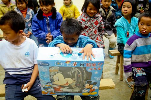 拿到大禮包的孩子興奮不已