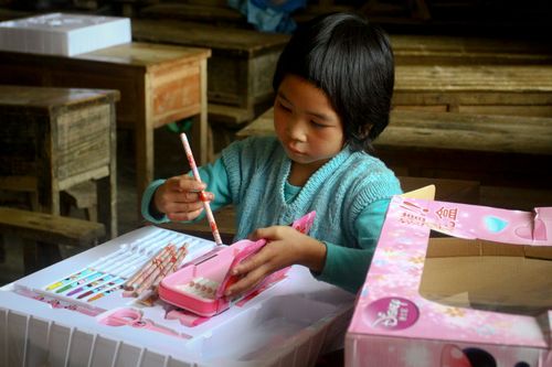 每個孩子都拿到文具禮包