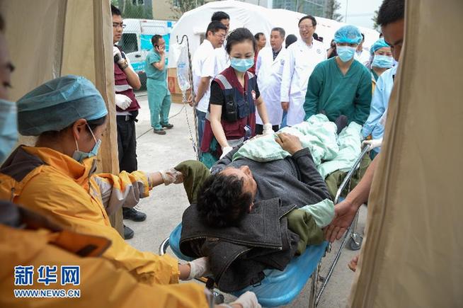 4月21日,重慶緊急醫(yī)學(xué)救援隊(duì)在救治從寶興縣靈關(guān)鎮(zhèn)轉(zhuǎn)移的重傷員。來自民政部的消息,據(jù)四川省民政廳21日17時(shí)統(tǒng)計(jì),四川蘆山7級(jí)地震已造成208人死亡、失蹤,其中184人死亡、24人失蹤,另有11826人受傷。新華社記者李健 攝