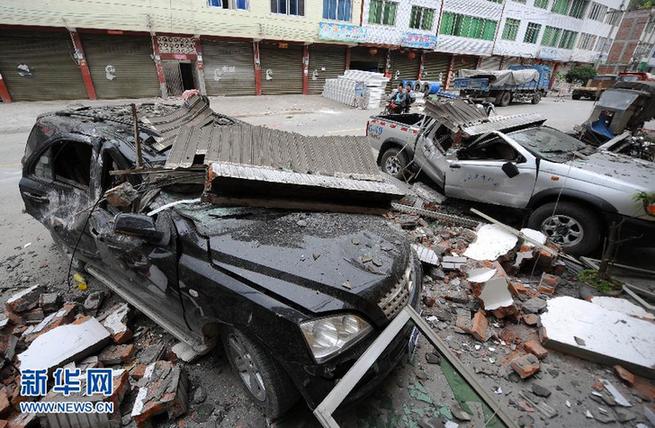 4月21日在四川省雅安市寶興縣靈關(guān)鎮(zhèn)拍攝的在地震中受損的車輛。來自民政部的消息,據(jù)四川省民政廳21日17時(shí)統(tǒng)計(jì),四川蘆山7級(jí)地震已造成208人死亡、失蹤,其中184人死亡、24人失蹤,另有11826人受傷。新華社發(fā)(薛玉斌攝)