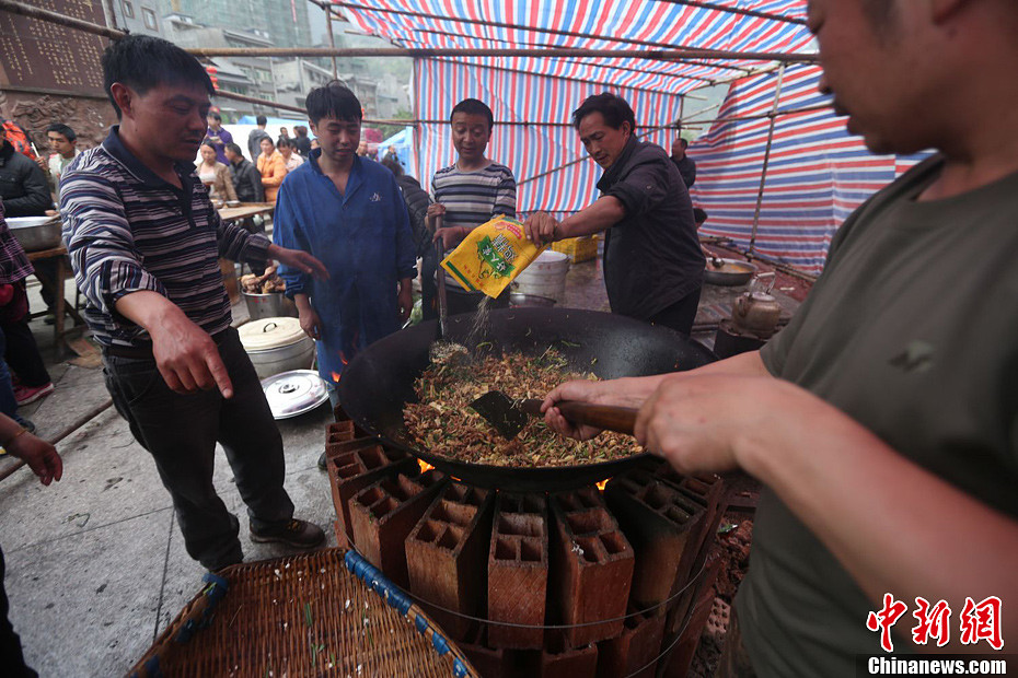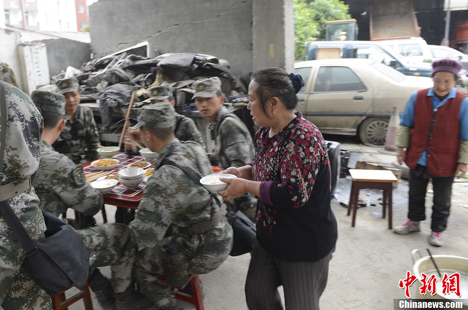 4月21日,四川省雅安市寶興縣靈關鎮,該鎮居民在自家為前來救災的官兵做飯。廖攀 攝