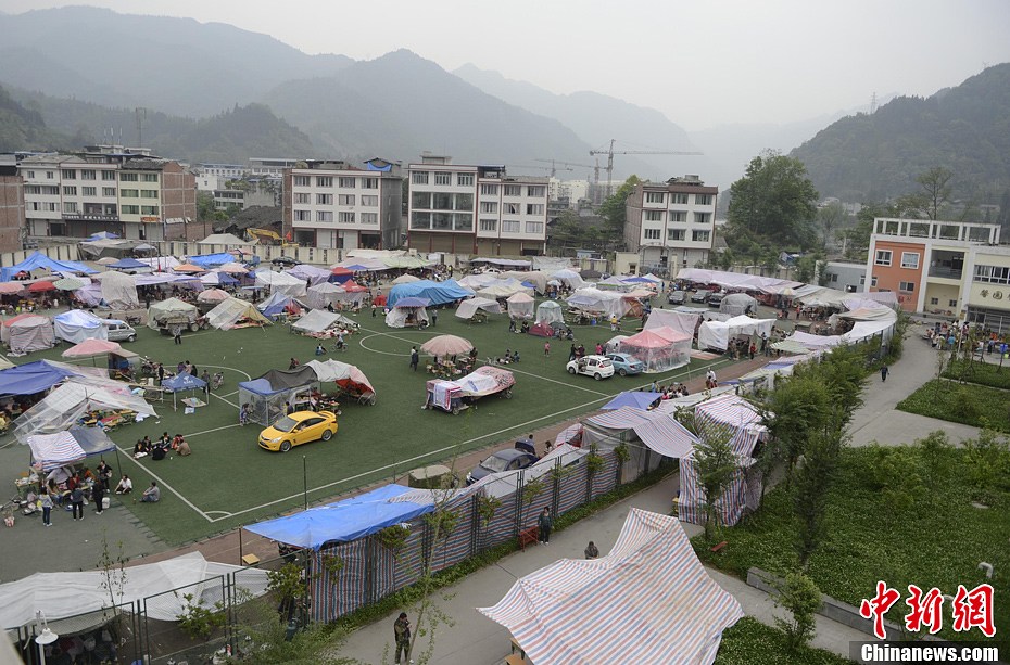 4月21日,四川省雅安市寶興縣靈關鎮,由澳門援建的靈關中學設為災民安置點。中新社發 廖攀 攝