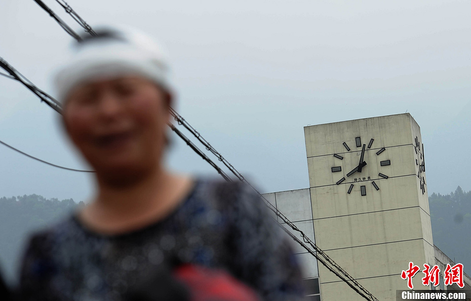 4月21日,一受傷人員經過蘆山縣城的商業大樓,大樓上的時間定格在8時2分。4月20日8時2分,四川省雅安市蘆山縣(北緯30.3,東經103.0)發生7.0級地震, 震源深度13公里。中新社發 陳超 攝