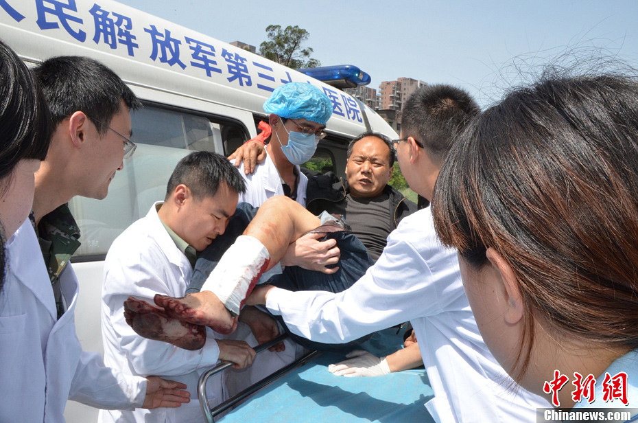 在4.20雅安地震中,醫護人員反應迅速,全力救治地震傷員,圖為中國人民解放軍第三十七醫院醫護人員正在救治雅安地震傷員。中新社發肖遠 攝