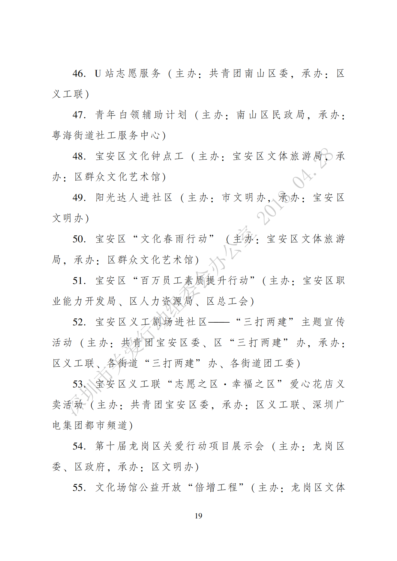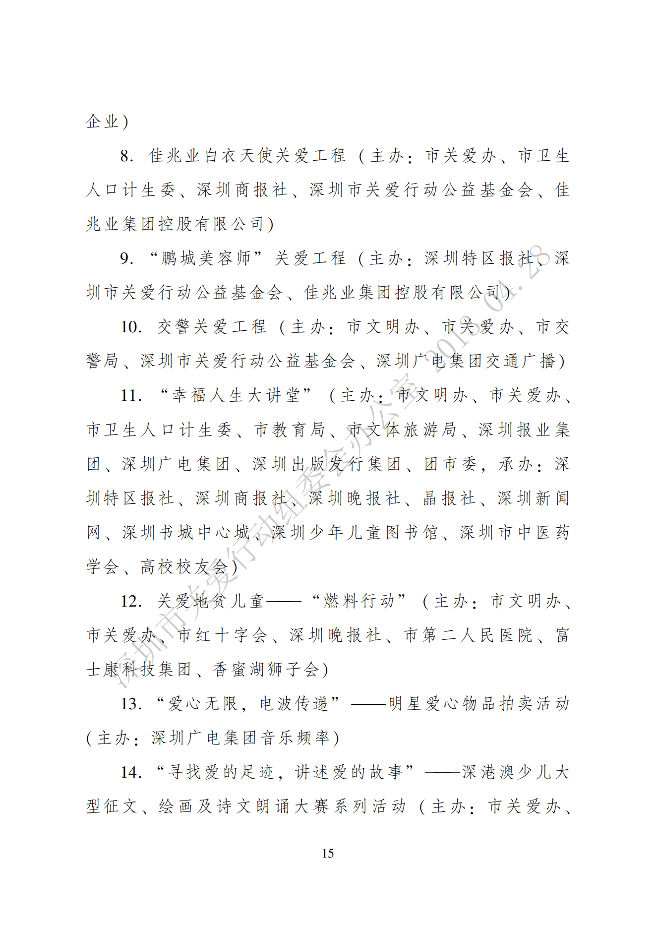 關于表彰第十屆深圳關愛行動先進集體、先進個人和優秀項目的通報