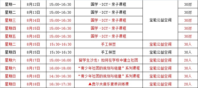 V-care暑期公益體驗(yàn)季本周活動(dòng)列表