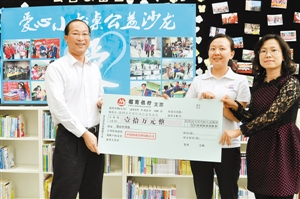 ????8日下午“愛心小書桌”的公益沙龍上,隨著“愛心小書桌”發(fā)起人孫影,從中航物業(yè)管理有限公司總經(jīng)理劉文波手中接過10萬元的捐款支票,這意味著更多山區(qū)貧困孩子將得到向往已久的小書桌。