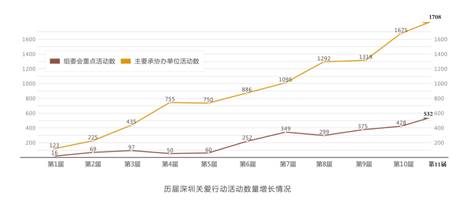 ????數據不完全統計,10年來,深圳關愛 主要承辦、協辦、支持單位共組織開展活動——1.8萬余項