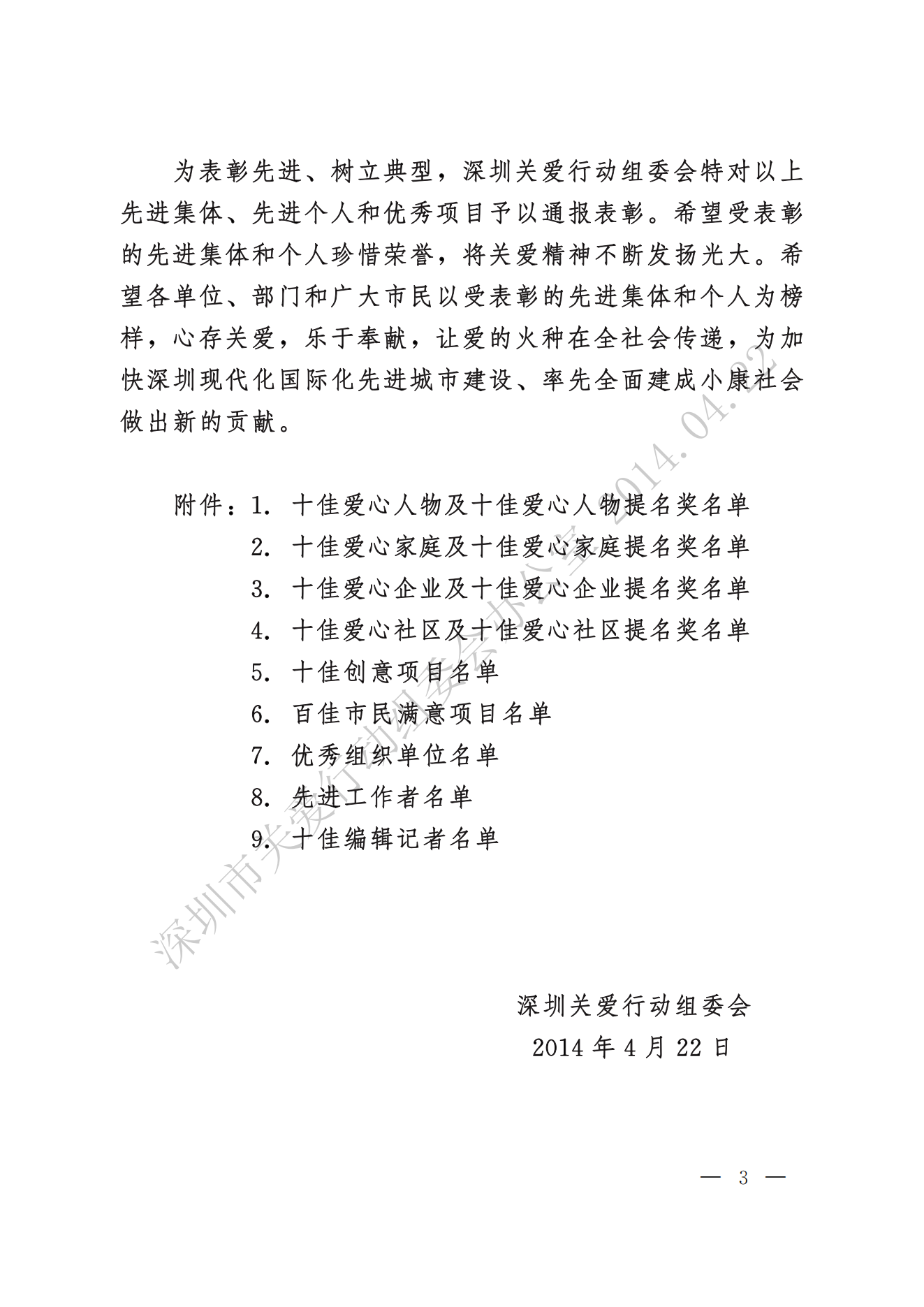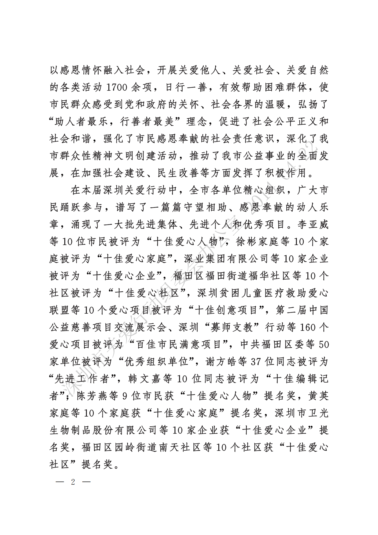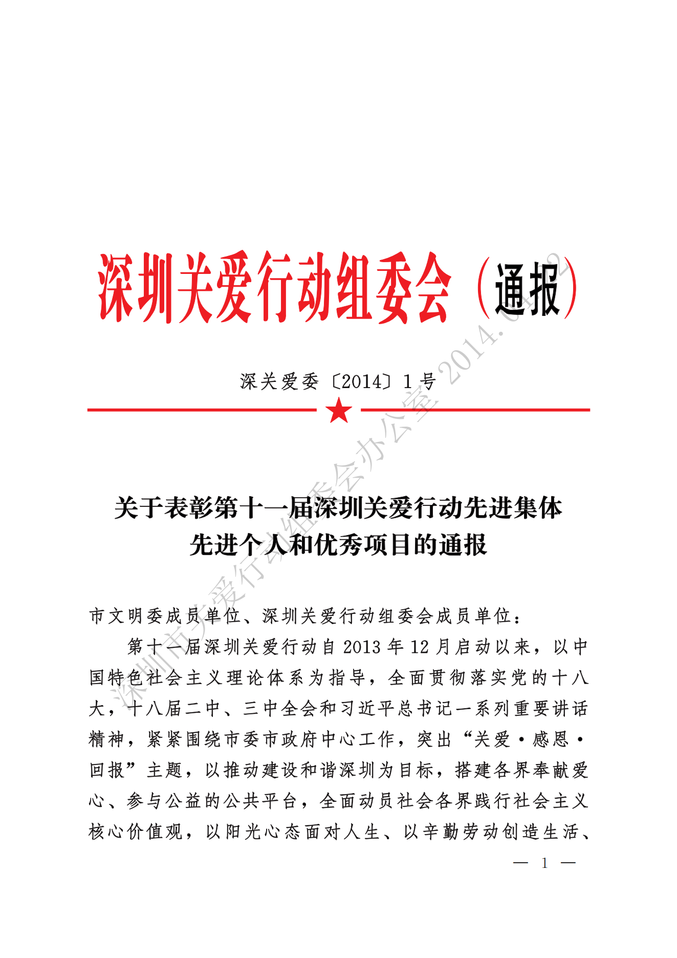 關(guān)于表彰第十一屆深圳關(guān)愛行動先進(jìn)集體、先進(jìn)個人和優(yōu)秀項(xiàng)目的通報