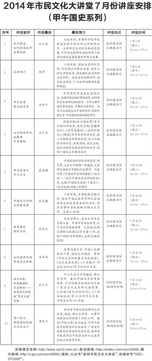2014年市民文化大講堂7月份講座安排(甲午國史系列)
