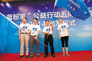????市政協副主席張效民等出席了昨日的出發儀式,并為參與“藍粉筆”公益活動的教師代表授旗壯行。