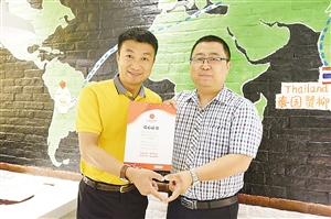 董超從深圳市萬味源餐飲管理有限公司運營總監陳攀手中接過愛心證書。