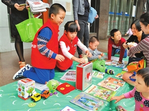 ▲10月30日,在南嶺村社區和愛心企業永盛豆漿、米蘇一刻蛋糕的支持下,龍崗分部80多名親子志愿者舉行善行集市義賣,現場招募新團員上百人。
