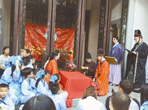 在園博園里表演的傳統婚禮。