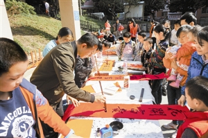 南山圍仔社區社工開展迎新年送春聯活動。 深圳特區報記者 羅莉瓊 通訊員 農之海 攝