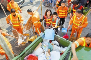 為了表達對環衛工人的敬意,呼吁更多社會力量對環衛工人予以關注與關愛,福田區城管局在春節前夕啟動“冬日暖橙”公益計劃,拉開2017年“眾志成‘橙’”關愛環衛工系列活動的序幕。福田區城管局相關負責人表示,活動地點選擇在城中村舉行。這是梅富村一條集中售賣菜肉的街道,平時環衛工人每天需多次打掃,每清潔一次都需三位環衛工人耗時2小時才能完成。家長們紛紛表示,本次活動讓人切實感受到了環衛工人的工作,也給孩子們上了一堂深刻的課。