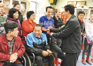 近日,光明新區光明辦事處社會事務辦工作人員到光明職康中心慰問殘障人士,送上慰問金并向他們帶去新春的祝福。