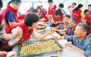 日前,深圳鵬程電動愛心車隊的的哥放棄營運,買來慰問品,和市義工聯(lián)松柏之愛組的義工,來到市社會福利中心老人院,聯(lián)手舉辦“感恩母愛,讓愛傳遞”獻愛心活動,和老人一起包餃子。深圳商報記者 陳錫明 通訊員 黃天肇 攝