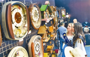 文博會(huì)2號(hào)館,名模參觀名鐘表。