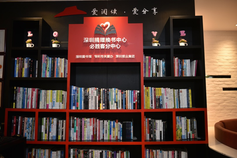 深圳捐贈換書中心是由深圳圖書館、深圳市關愛辦、深圳報業集團合作,于2012年11月30日揭牌成立。以共享全民閱讀資源,構建城市第三空間為宗旨,立足深圳通過圖書館、媒體與社會各界的力量,共同搭建全民閱讀資源公共服務平臺。在深圳捐贈換書中心成立五周年之際,深圳圖書館首次跨界連鎖餐飲企業聯手打造的社區公益閱讀空間——捐贈換書聯網分中心“必勝客分中心”正式揭牌成立。