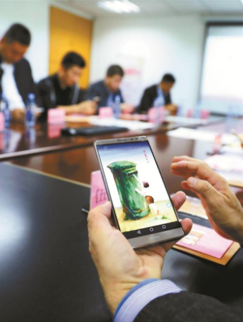 ▲參加啟動儀式的嘉賓通過手機,在線觀看名人家書。深圳晚報記者陳玉 攝