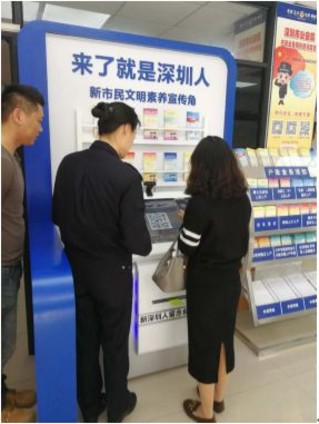 除了給新市民提供培訓,深圳還特別推出“新市民文明宣傳角”,新市民可在入戶之時為自己留下一張自拍,并附上一段寄語,述說對深圳的期待,對未來的暢想。目前,宣傳角已在新洲戶政中心和南山高新戶政中心兩個地方設立。