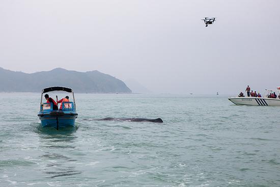 2017年3月,一頭抹香鯨在大亞灣海域迷航擱淺,并引發廣泛關注。深惠港三地緊密合作,展開一場“政府主導、專家領銜、社會參與”的抹香鯨緊急救護大行動。抹香鯨不幸死亡后,專家學者們精心制作了抹香鯨系列標本,用于開展科學普及以及保護海洋環境、愛護海洋動物的宣傳教育。
