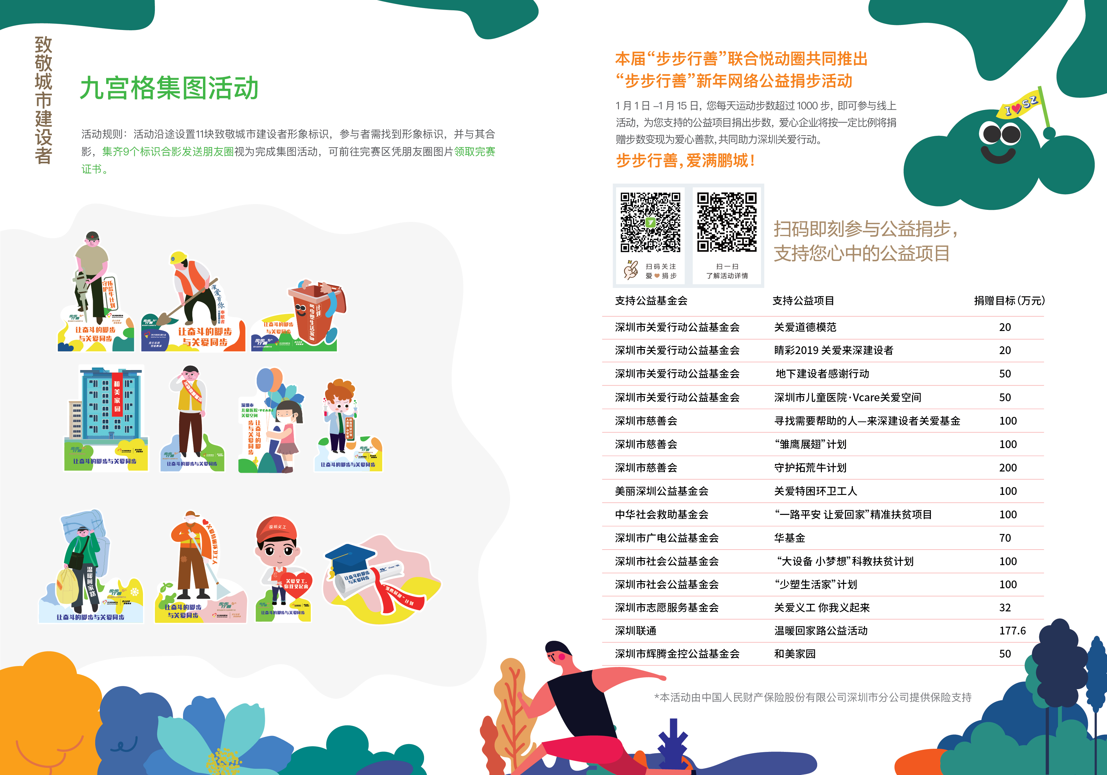 2019年1月1日上午,由深圳市文明辦、深圳市關愛辦主辦,羅湖區文化體育局、羅湖區文明辦、深圳晚報社、悅動圈承辦的“步步行善”第四屆深圳新年公益網絡行動在羅湖體育休閑公園啟動,并以此為標志,在全市范圍啟動2019新春關愛行動。該活動倡導“新年第一天、善行每一步”,動員廣大市民步履不停、向善而行,以捐贈步數的方式為關愛項目籌款,向為改革開放和城市發展作出貢獻的建設者表達敬意。