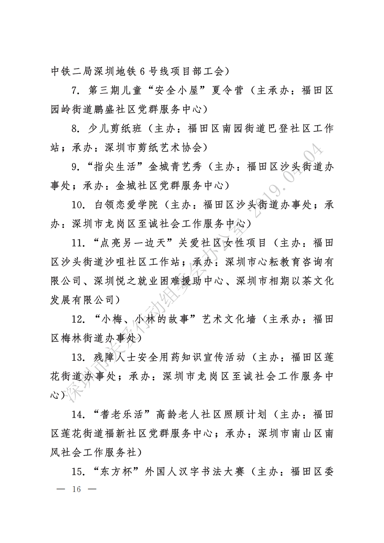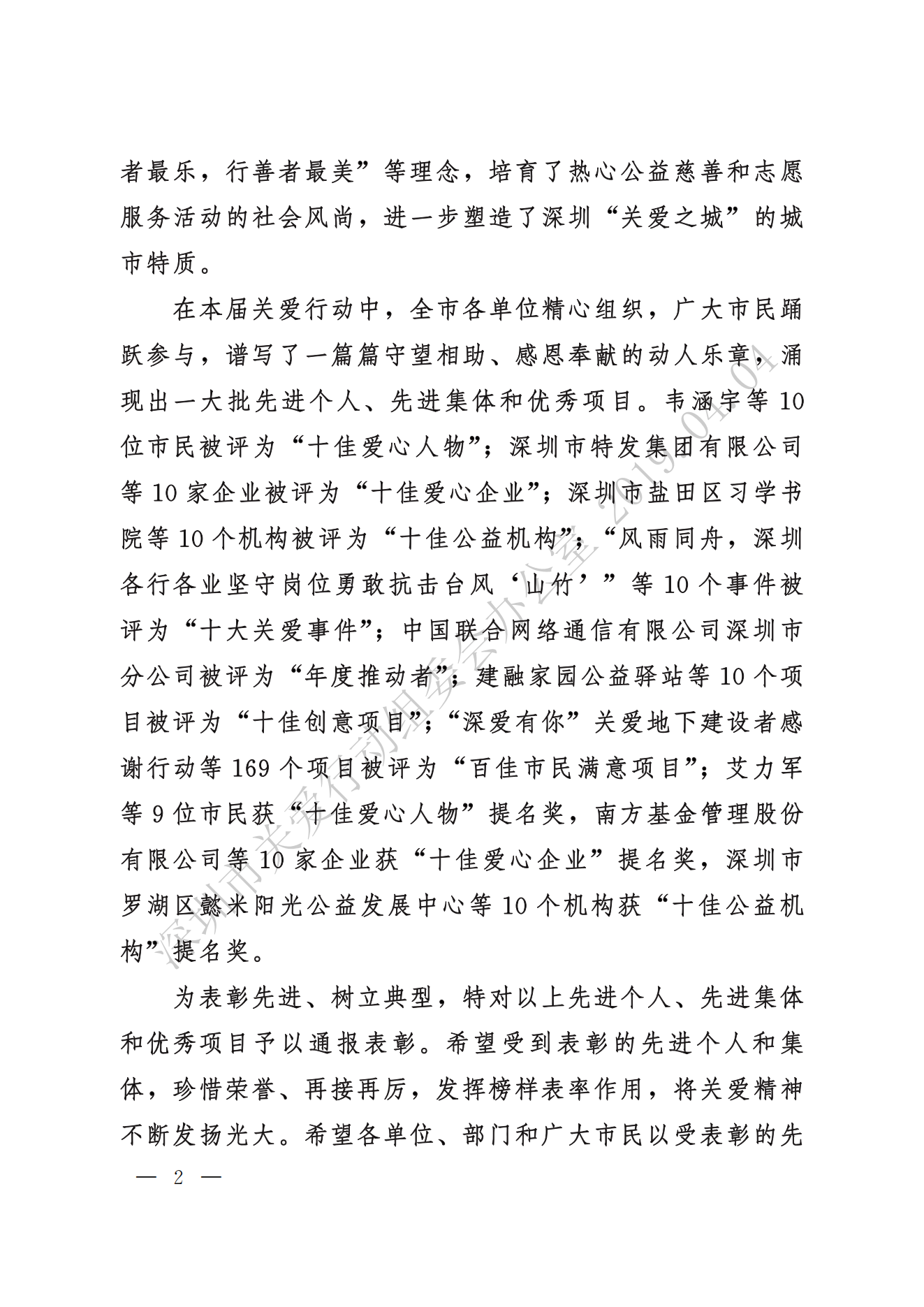 關于表彰第十六屆深圳關愛行動先進個人、先進集體和優秀項目的通報