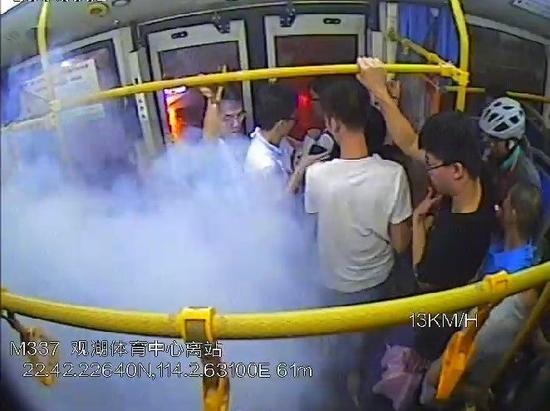 2018 年7月13日19:39分下班高峰期,M337 線駕駛員陳李何駕駛粵B31566D車輛執行營運任務行駛至大和路龍華市場監管局站臺路段時,車廂后門附近區域有青煙冒出,還有火花閃現,車內乘客一片慌亂,乘務員謝金輝大聲向乘客喊道,“別慌!別慌!馬上停車!大家依次下車!”陳李何立即將車輛安全停靠在路邊,打開車門,與乘務員疏散乘客。同時,陳李何迅速取出駕駛位旁的滅火器,沖向車廂后門區域的起火位置,撲滅初期火源。后陳李何仔細檢查起火位置,判斷是乘客使用充電寶不當引起充電寶發生爆燃。初步判斷出起火原因后陳師傅立即撥打了110 報警電話,并及時向車隊匯報。由于駕駛員陳李何、乘務員謝金輝及時、冷靜的處理,48秒內50余名乘客全部安全疏散,無一人受傷。