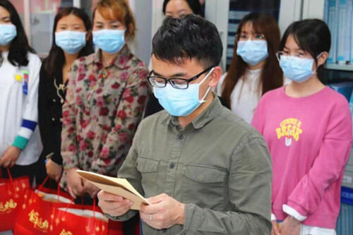 檢驗技師劉永秋表示:“2020年這么艱難的一年我們都挺過來了,2021年我們將繼續努力堅守崗位,為人民的健康付出自己力所能及的一份力量,希望疫情早日過去,大家都身體健康,越來越好。雖然過年不能回家與家人團聚,收到社會各界對醫護人員的關愛卻讓我們心中倍感溫暖?!边€有醫務人員表示:“今年由于疫情無法正常回家過年,本來心情挺低落的,今天收到了來自社會的新年關愛,瞬間被感動到了,深切感受到了作為醫務人員的自豪感,感謝大家對醫務人員的理解和支持,有了你們的支持和關愛,一切付出都是值得的?!?/p>