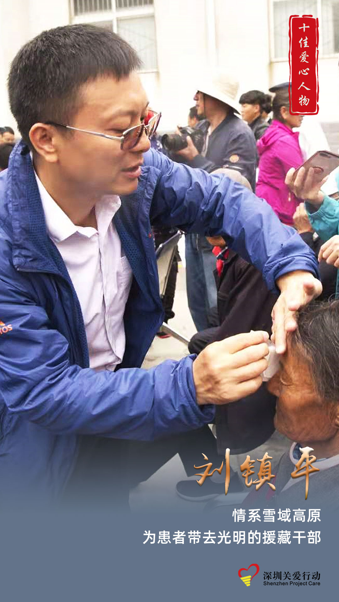 劉鎮平,深圳市中西醫結合醫院總務科主任、原深圳市第九批援藏工作組察隅縣衛健委副主任。2019年6月赴西藏察隅縣掛職,援藏期間,他經歷了父親罹患癌癥、小女兒出生等變化,但絲毫沒有影響他對援藏工作的努力與付出,出色完成了三級對口幫扶工作和創二乙醫院任務。他組織結對幫教,開展教學查房、手術帶教、學術講座等多種培訓200多場;搭建資源,組織義診、篩查和治療,如他組織的“光明行”公益活動為察隅老百姓篩查眼疾患者近700人,給64名白內障患者免費實施復明手術;在他和其他援藏干部的穿針引線下,藏區兒童“先天性心臟病”救治活動兩年共為13名藏族兒童完成手術。2020年開展“送醫送藥送知識”下鄉義診8次,惠及2000人次,另進行兩癌篩查1800人、包蟲病篩查1000余人次。