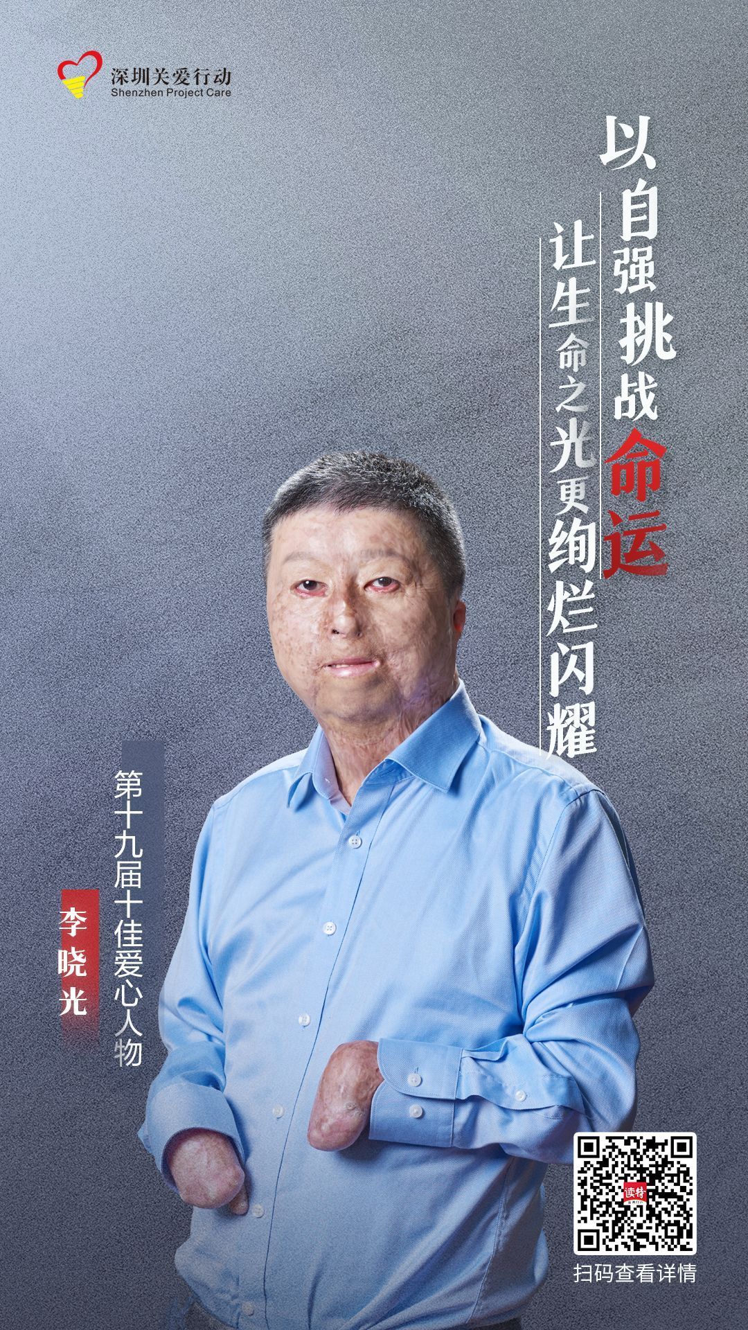 富士康科技集團(tuán)技術(shù)經(jīng)理。當(dāng)提起“全國勞動模范”“專利大王”“自動化設(shè)備研發(fā)部經(jīng)理”這些光環(huán)時,人們很難將它們與全身76%重三度燒傷、雙手截肢、右腳跛行的李曉光聯(lián)系在一起。然而事實就是如此,雖然重度殘疾,他依然20年如一日地?fù)湓谙M(fèi)電子產(chǎn)品、自動化設(shè)備生產(chǎn)研發(fā)一線,用僅剩一個指關(guān)節(jié)的“雙手”錄測數(shù)據(jù)、組裝樣品,累計提出專利申請700余件,獲得中國、美國官方授權(quán)專利300余件。燒傷之際,社會各界為他送去了溫暖的關(guān)愛,當(dāng)自己站起來后,他也將這種溫暖傳遞下去。工作之余,他化身“愛的導(dǎo)師”,主動站上演講臺,為3萬余人分享自己的奮斗歷程,激勵他們鉆研創(chuàng)新、迎難而上。