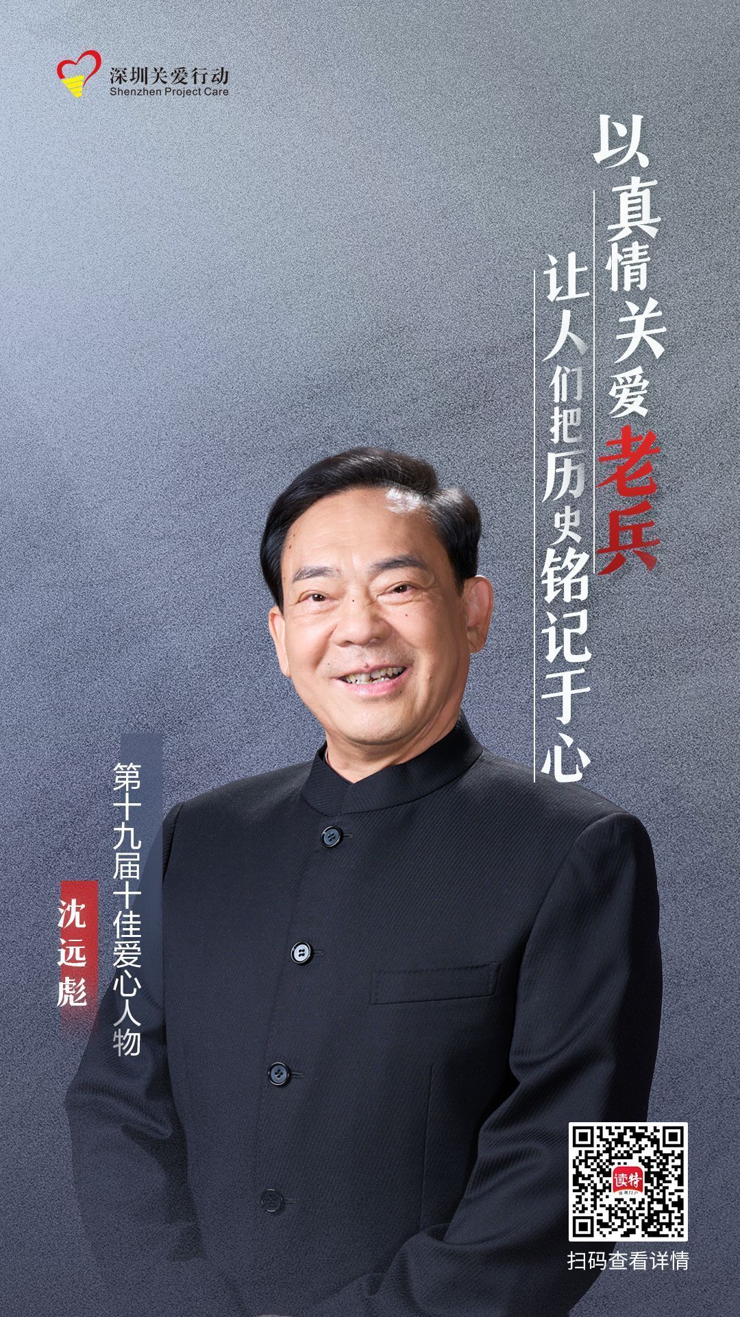 他曾把青春獻過軍旅,如今以拳拳之心聯合發起多項關愛基金;他既是深圳科技創新巨輪破浪前行的一道身影,又是幸存抗戰老兵心靈的撫慰、生活的支持。沈遠彪,盡顯一名老兵的生命底色,譜寫“生命不息,公益不止”的壯歌。