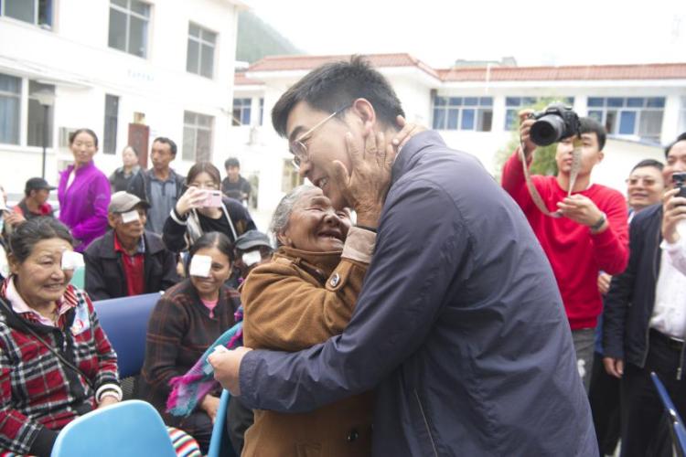 2020年中下旬,深圳市的眼科專家到察隅縣給老百姓做白內障手術,手術結束后,王甘露及同伴給老百姓揭開手術眼睛的紗布。
