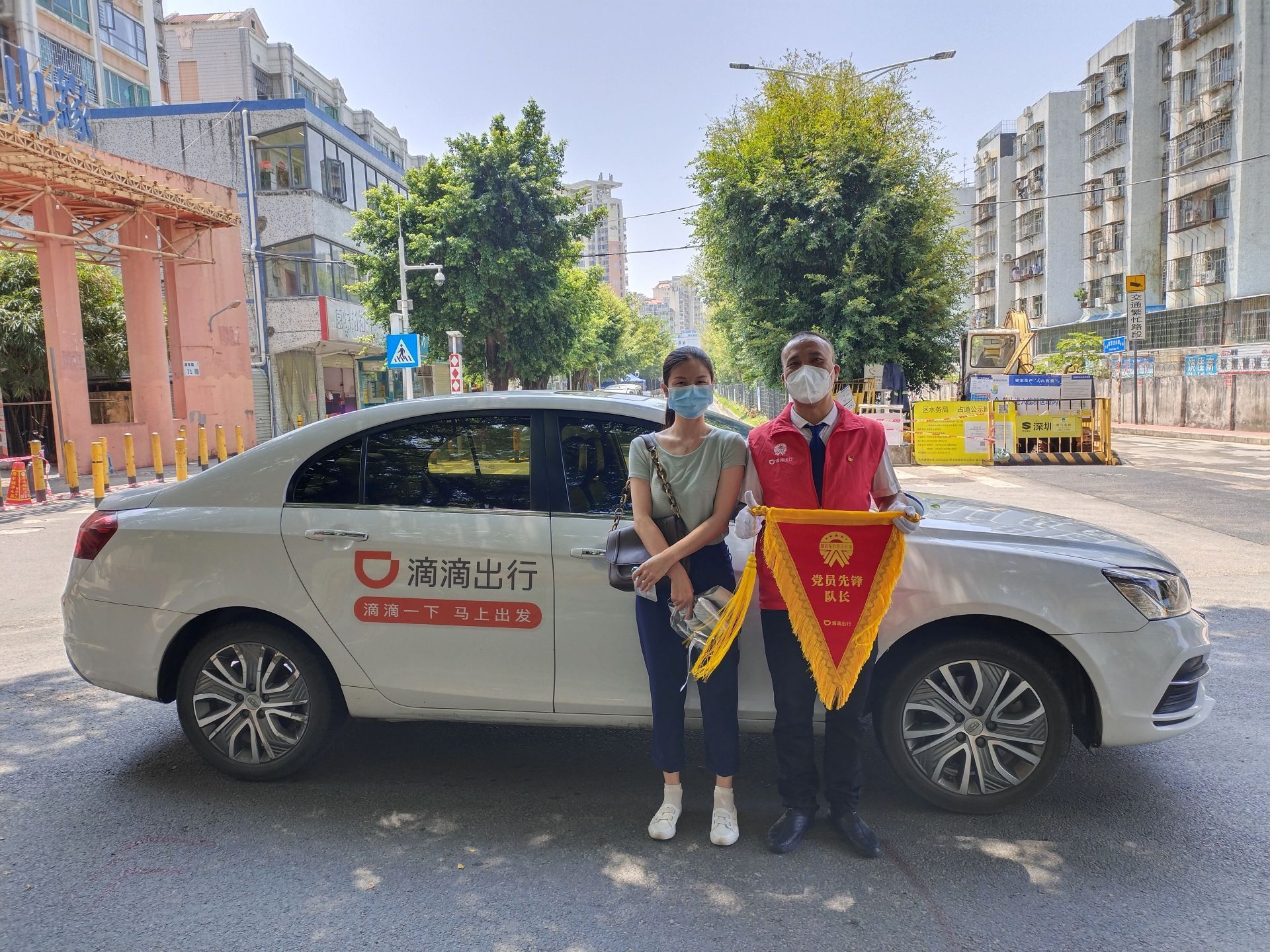 觀察黃天華的車,會發(fā)現(xiàn)有一些不同于其他滴滴網(wǎng)約車的地方:貼在車外的“網(wǎng)約車黨員司機崗”的標(biāo)識,儀表臺上放置的黨旗、國旗,座椅靠背上掛著的黨史知識圖,座椅袋里放著的黨史書。黃天華在駕駛網(wǎng)約車時也會佩戴中國共產(chǎn)黨黨員徽章上崗。“我有26年黨齡,既是最早一批加入滴滴出行深圳流動黨支部的黨員駕駛員,也是首批正式‘亮標(biāo)上崗’的深圳網(wǎng)約車‘黨員司機’之一。市民在網(wǎng)約車平臺上打車時,‘黨員司機’會有清晰的標(biāo)識,有了這個標(biāo)識,時刻提醒我要為大家提供更高質(zhì)量的服務(wù)。”黃天華說。