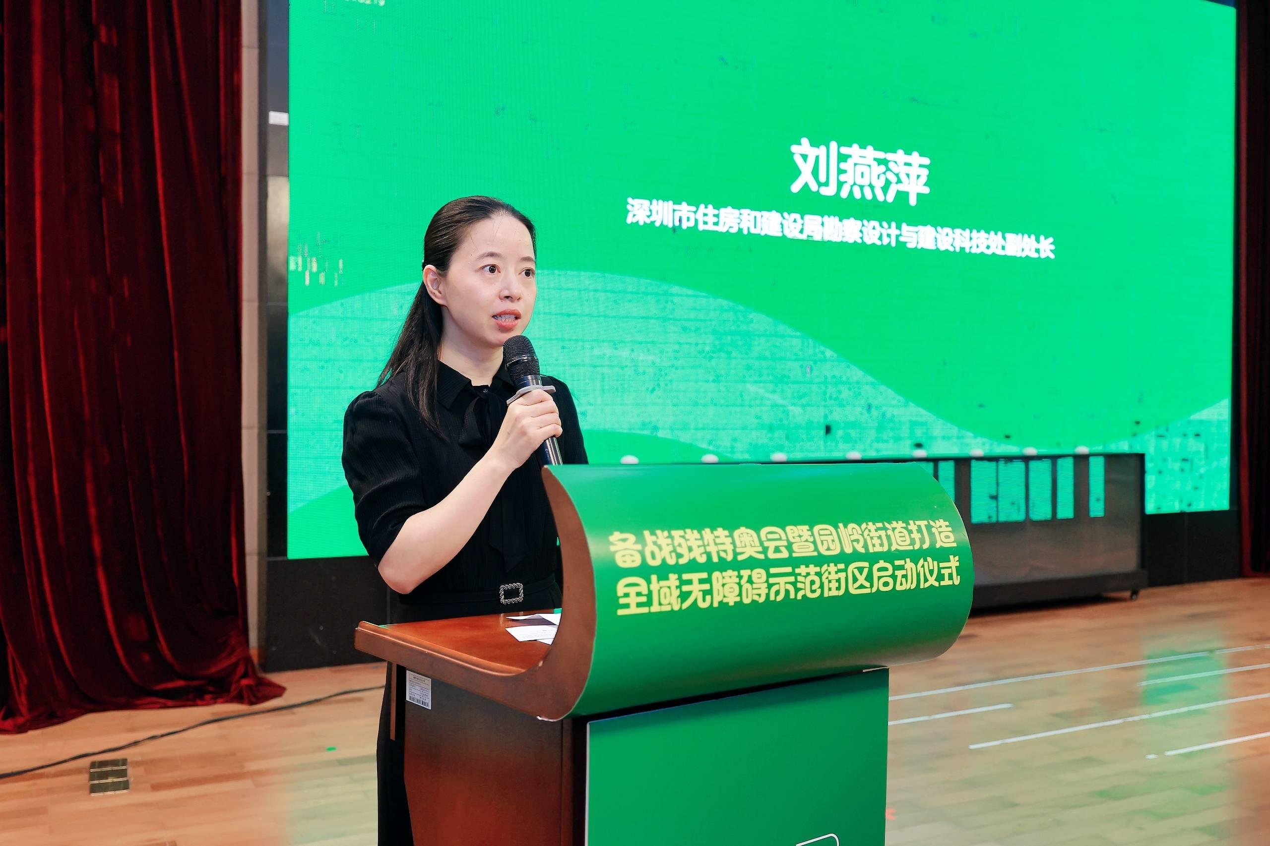 市住建局勘察設(shè)計與建設(shè)科技處副處長劉燕萍宣讀園嶺街道作為深圳市選定的街道級無障礙示范項(xiàng)目的批復(fù),并詳細(xì)介紹了深圳市創(chuàng)建全國無障礙建設(shè)示范城市的實(shí)施方案。她介紹,深圳將結(jié)合深圳濱海城市氣候特征以及嶺南文化特色,融合全運(yùn)會和殘?zhí)貖W會等重大賽事、山海連城建設(shè)等工作,按照系統(tǒng)化、網(wǎng)絡(luò)化的無障礙城市建設(shè)思路,建立以公共設(shè)施、公共交通和公共空間為要素的一體化無障礙城市空間體系,打造福田區(qū)園嶺街道等一批能夠體現(xiàn)深圳特色的精品無障礙示范項(xiàng)目,形成可復(fù)制、可推廣的創(chuàng)新經(jīng)驗(yàn),努力成為全國無障礙示范建設(shè)標(biāo)桿。