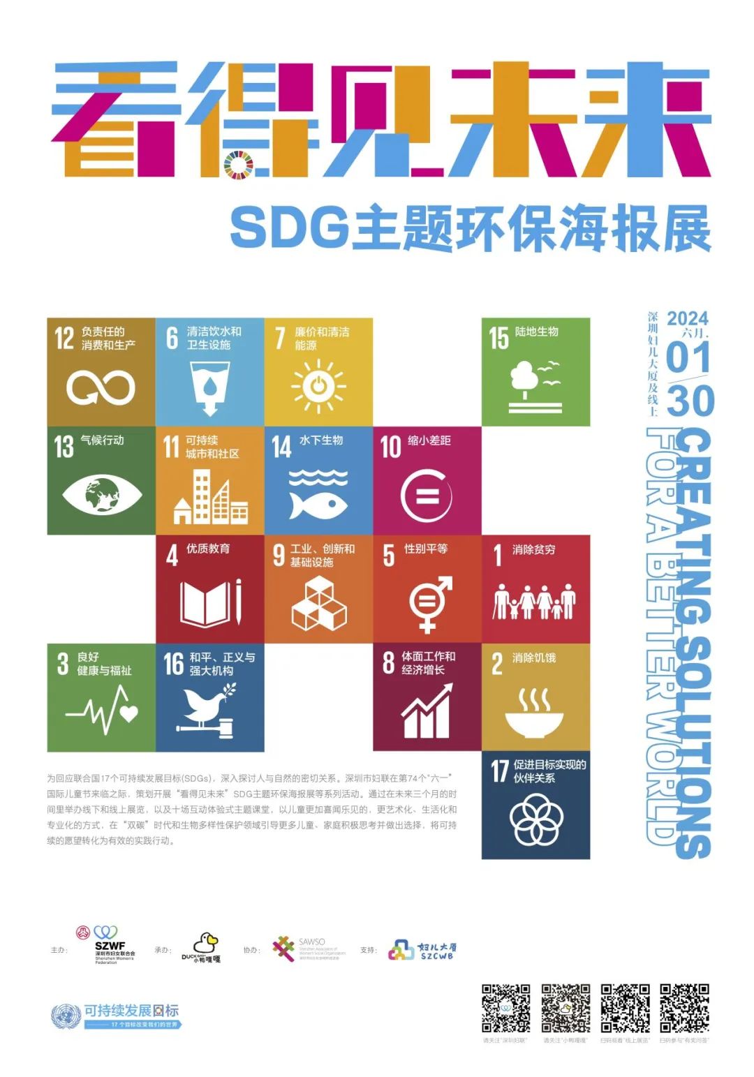 活動簡介:為回應聯合國17個可持續發展目標(SDGs),深入探討人與自然的密切關系。深圳市婦聯在第74個“六一”國際兒童節來臨之際,策劃開展“看得見未來”SDG主題環保海報展等系列活動。未來三個月的時間里將舉辦線下和線上展覽,以及10場互動體驗式主題課堂,以兒童更加喜聞樂見的,更藝術化、生活化和專業化的方式,在“雙碳”時代和生物多樣性保護領域引導更多兒童、家庭積極思考并做出選擇,將可持續的愿望轉化為有效的實踐行動。